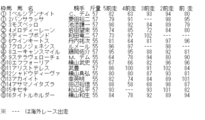 7 | クロノジェネシス | 72 | 68 | 81 | 90 | 76 | 当日 | 1 |