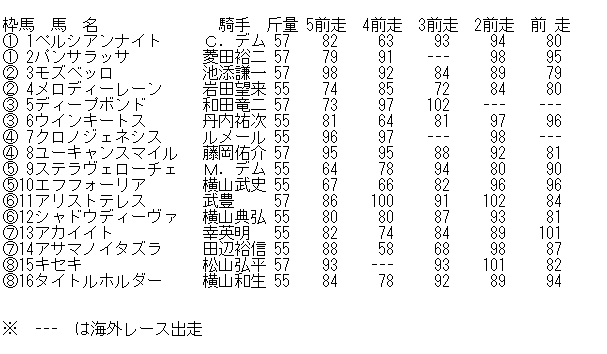 12 | シャドウディーヴァ | 62 | 55 | 61 | 69 | 70 | 当日 | 14 |