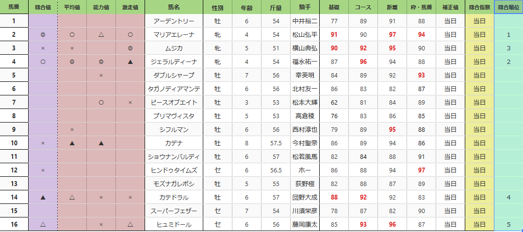 全馬、最近はスローな展開なレースが多く、指数も低めに出て混戦模様。