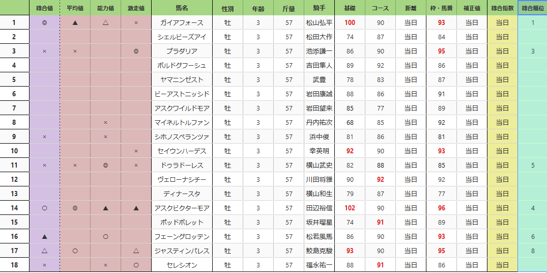 条件上がり馬も何頭かおり、ここは手広く行くのがいいでしょうか。