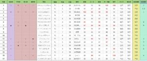 ●補正値 主に当日、馬場状態、過去のレースで不利など、修正点を上記の各指数を再チェックし、±指数を追加。
