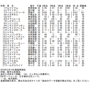 今週も配信のみの予定ですが、枠確定前の、総合指数表アップしておきます。